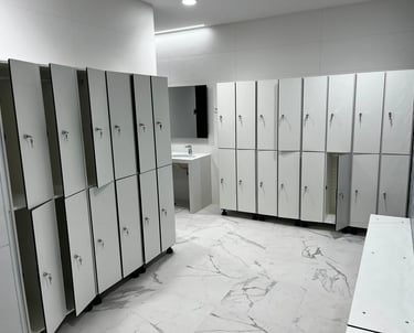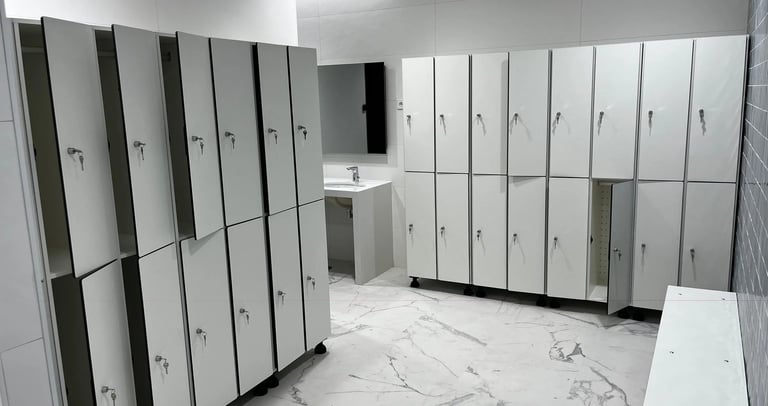 Sinowall provee sistemas de cabinas sanitarias fabricadas en compacto fenólico de 12 mm, la solución definitiva para entornos de alto tránsito que requieren resistencia a la humedad, impactos y productos químicos. Nuestras divisiones autoportantes con herrajes de acero inoxidable garantizan superficies antibacterianas de fácil limpieza y cumplimiento de normativas de bioseguridad en centros deportivos, hospitales y zonas comerciales.